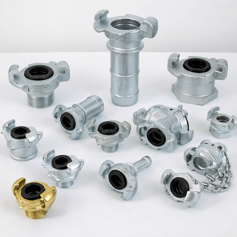 Los acoplamientos de garra son conexiones universales que se utilizan en múltiples aplicaciones, como la transferencia de aire comprimido, la conexión de herramientas y sistemas neumáticos, así como en circuitos de agua para la industria, la construcción, la agricultura y la horticultura.