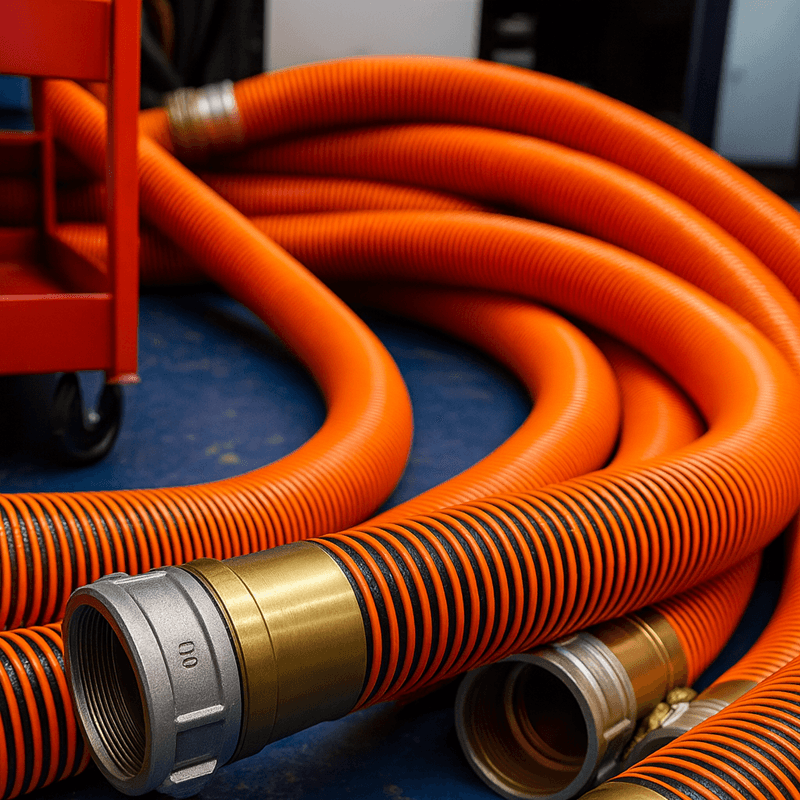 En Corsaflex también ofrecemos acoples Camlock, conexiones rápidas y ensambles completos de mangueras para hidrocarburos, brindando soluciones listas para trabajar de forma segura y eficiente.